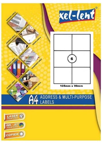 Xel-lent 105mm x 99mm Multi-Purpose Labels offer a reliable solution for your labeling needs. Each pack includes 100 A4 sheets, with 6 self-adhesive stickers per sheet, totaling 600 labels. These labels stick securely to paper, cardboard, plastic, and more.